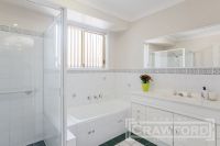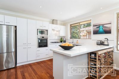 The stunningly updated kitchen boasts generous storage, wide stone benches, european appliances and a double sink, with the adjoining bay-windowed dining room also enjoying the view onto the rear fenced garden , making it easy to keep an eye on the kids in the yard whilst preparing meals.