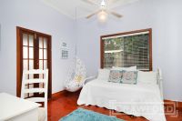 THREE bedrooms all featuring built-in wardrobes and ceiling fans, the front bedroom opening to the veranda through timber French doors.