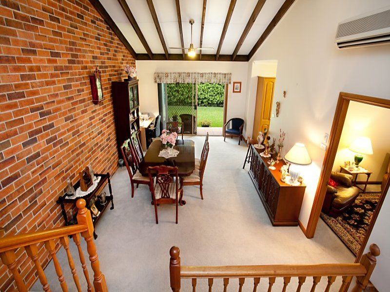 A stylish and spacious Torrens Title split level Brick Veneer and Tile townhouse. Offers on ground floor - tiled entry to spacious formal living room with internal access to garage (The Den) middle level open plan dining/family room with soaring raked timber ceilings opening to sunny north facing courtyard screened by a Murraya hedge, 3rd bedroom or study, Tassie oak kitchen, 2nd wc off laundry. UPSTAIRS 2 bedrooms, both with built-in wardrobes opening to full length front balcony, fresh white tiled bathroom with green & gold freize has a bath and shower recess and a separate toilet. Side driveway to a 2ND DETACHED GARAGE, A GREAT LOCATION NEAR LAMBTON PARK AND THE LOCAL VILLAGE.