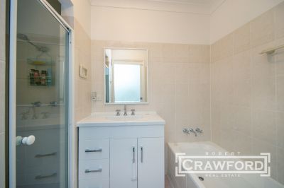 UPSTAIRS: THREE bedrooms all with built-ins, the large Master bedroom with an alcove for a study BR3 with built-in plus access to attic storage space. The Neutral toned bathroom has shower recess and a tub and the benefit of a separate WC.