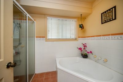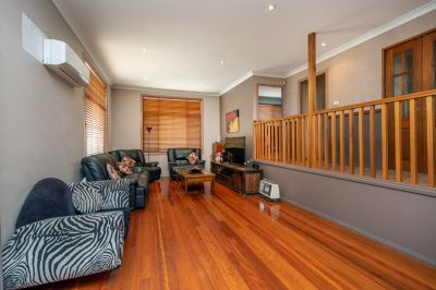 Step inside the front door to find the first of two living areas with floating timber floors and air conditioning. Down the hallway are the 4 double bedrooms, all with ceiling fans, built-ins and ensuite to main. The main bathroom is also located on this level and offers separate, shower, bath and WC.