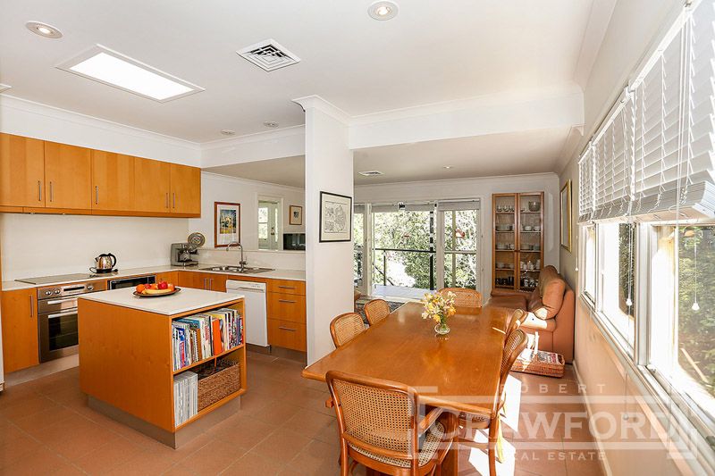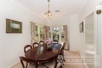 Accommodation includes wide tiled entrance hallway, formal lounge room with picture windows & double doors opening to the sun drenched tiled patio, separate formal dining or sitting room with adjoining Sun Terrace, updated custom designed kitchen with Stone Italiana bench tops, island preparation bench, Hoop Pine cabinetry, open plan family room & casual dining opening to the rear deck with an array of bird life overlooking established ever changing private gardens.