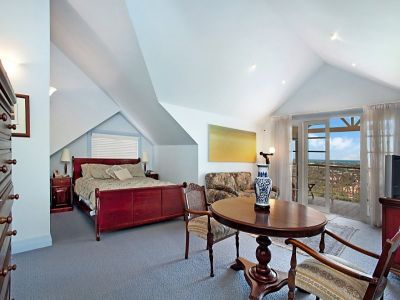 TOP LEVEL Two additional bedrooms including the grand Master suite featuring high pitched ceilings with walk in wardrobe and large en-suite bathroom. The main bedroom has its own private balcony from which to admire the magnificent views.