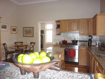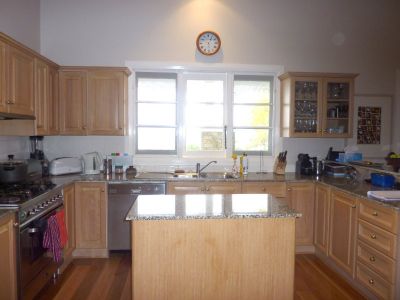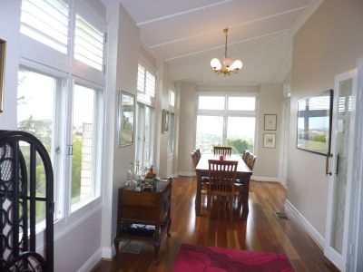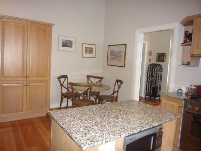 GROUND LEVEL Covered porch to the front entrance featuring original leadlight door with fanlight and side lights, hallway to the formal front parlour retaining the high decorative patterned ceilings, Plantation Shutters and a bay window with seat, fabulous elongated formal dining room with French doors opening to the broad eastern veranda to relax and enjoy the cooling sea breezes and the glorious view. Also on this level there are 3 large bedrooms, main bathroom and family room adjoining the spacious timber and granite kitchen complete with breakfast nook and island preparation bench, a family sized ILVE stainless steel stove (gas cooktop) and Miele dishwasher. The family room also has access to the front veranda.