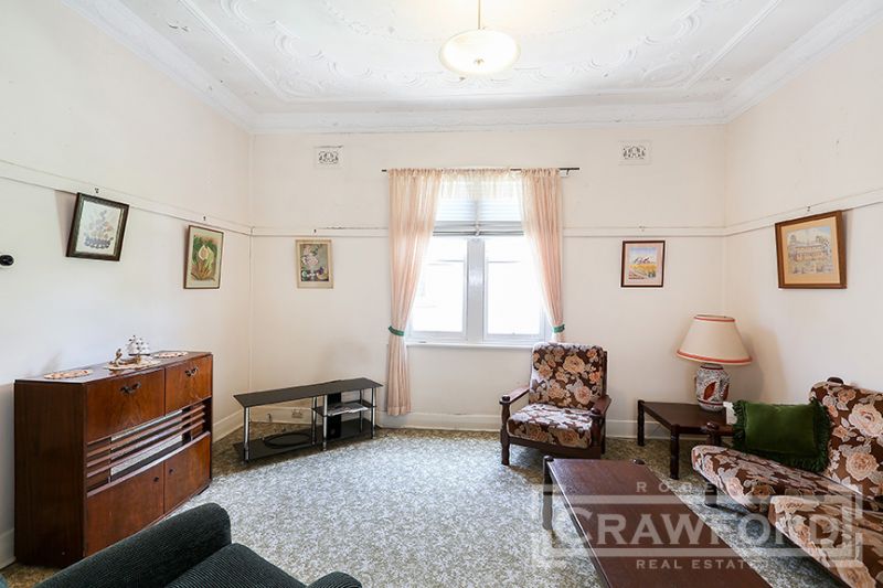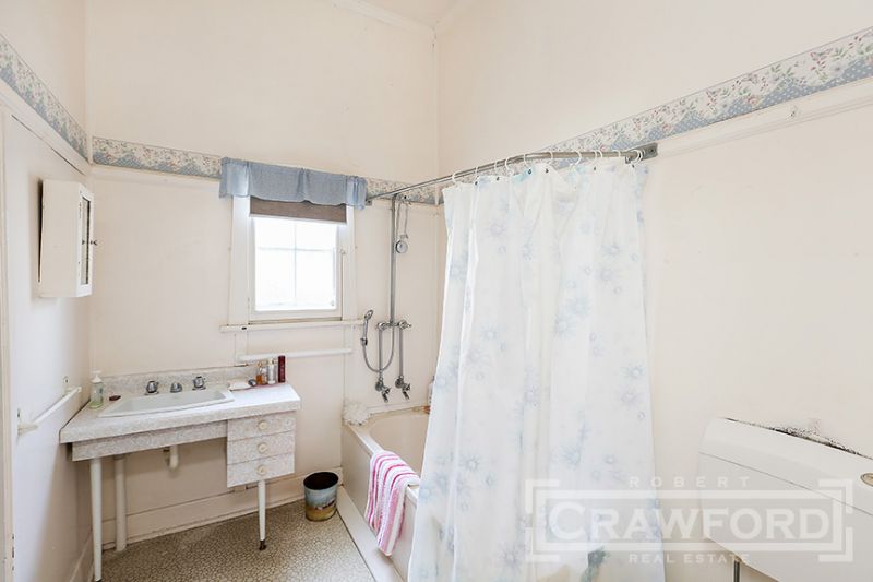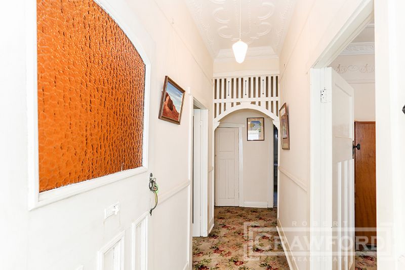 Retaining many original features this period home is ready to renovate and restore to your own taste. Offers side entry to hallway with high (3m ) ceilings, ornate plaster & timber fretwork, main bedroom opening thru French doors to front veranda, good sized 2nd bedroom, interconnecting lounge room & dining room, central bathroom with walk-in linen cupboard/ storeroom attached, galley kitchen and a rear sunroom. Internal laundry and WC. Ideal aspect - North facing backyard with rear lane access for garaging.